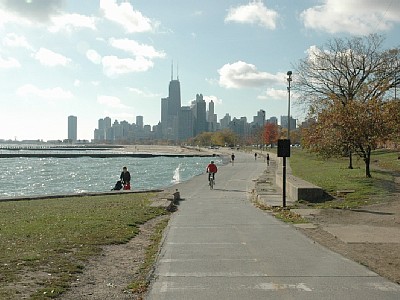 Lake front path for walking, jogging, biking, etc., Three blocks away